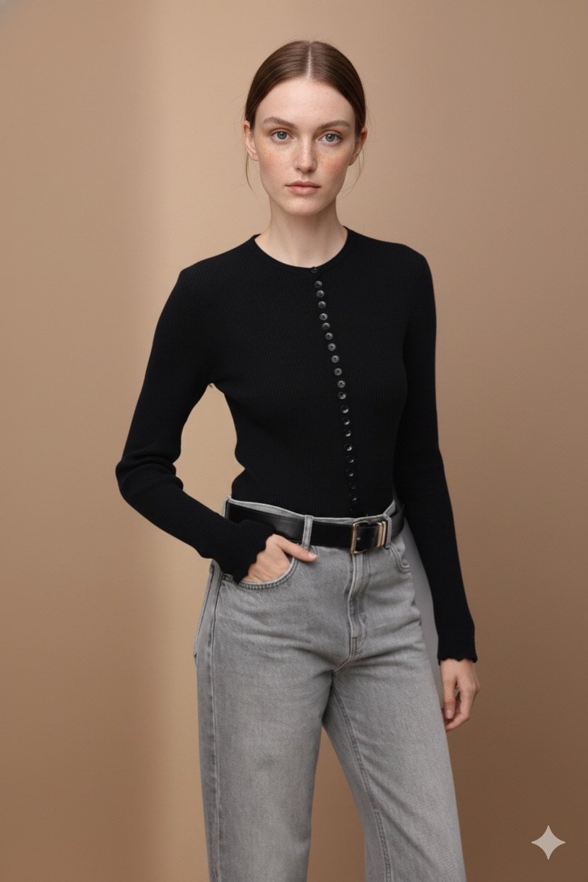 Detaylar: Düğmeli kapama, uzun/3-4 kollu tasarım, zarif görünümlü ribana bitişler.
